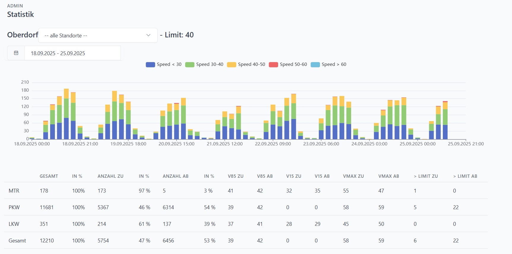 - Detaillierte Analysen: Erhalten Sie Einblicke in die Verteilung der Fahrzeugtypen und die Verkehrsintensität an verschiedenen Standorten.