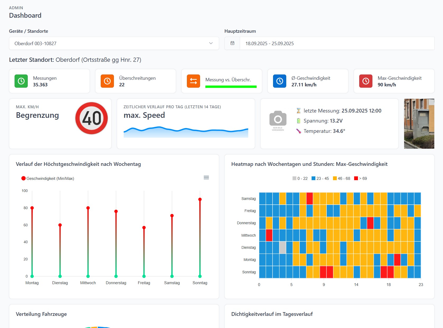 - Visuelle Darstellung: Heatmaps zeigen Ihnen auf einen Blick, an welchen Tagen und zu welchen Zeiten die meisten Geschwindigkeitsübertretungen stattfinden.